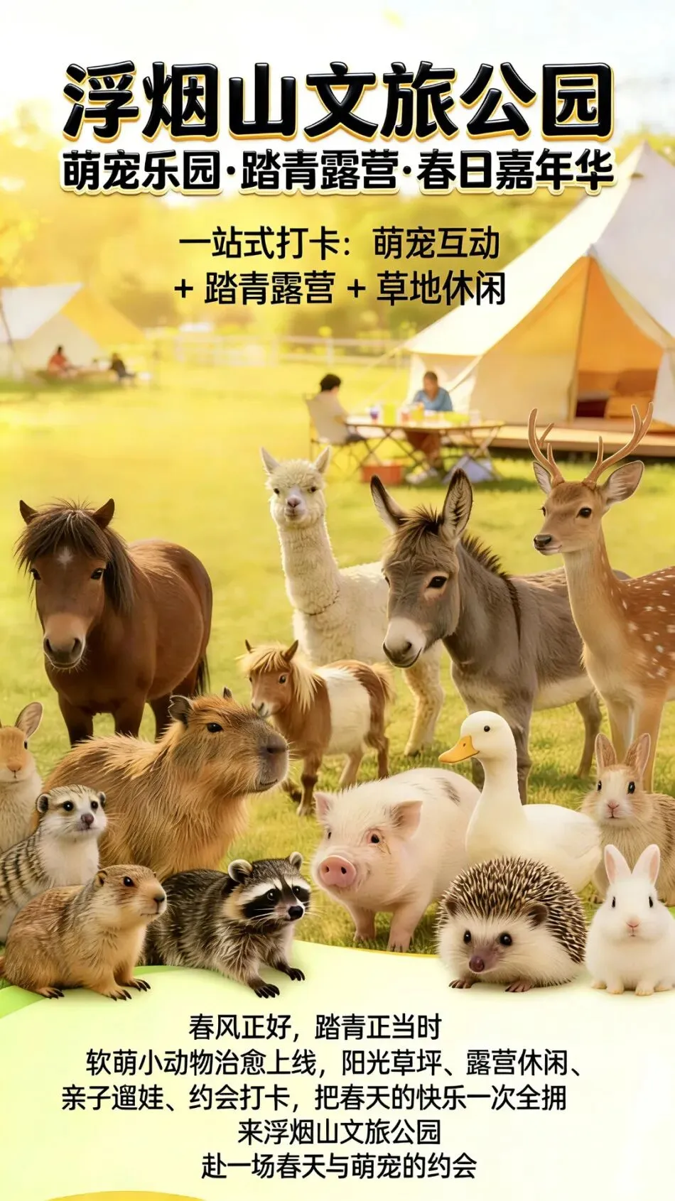 免费露营超惬意~羊驼、水豚、小矮马、梅花鹿等软萌萌宠扎堆,零距离投喂抚摸,无笼安全互动,治愈感拉满!