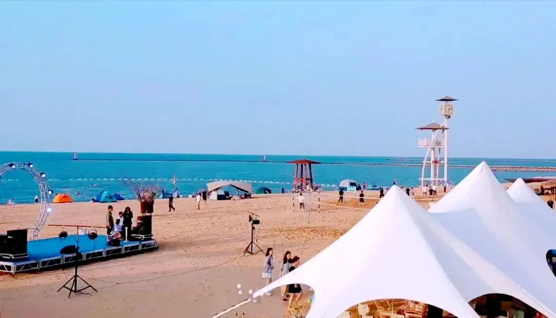 欢乐海沙滩春和景明、沙柔浪轻,适合踏浪休闲与亲子游玩。抖音上线专属优惠,成人票原价30元特惠19.9元、亲子票29.9元(含1成人1儿童),需提前在抖音官方平台购票。