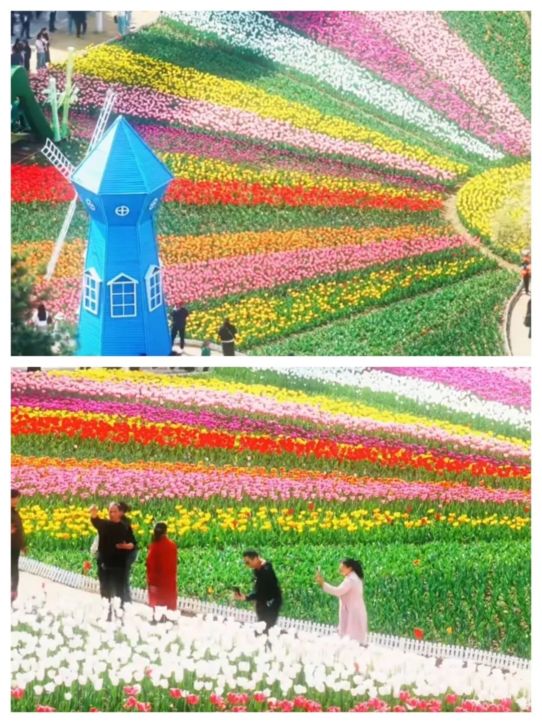 官方预测,今年的郁金香花海将接待游客300万余次,带动旅游收入达27亿元。