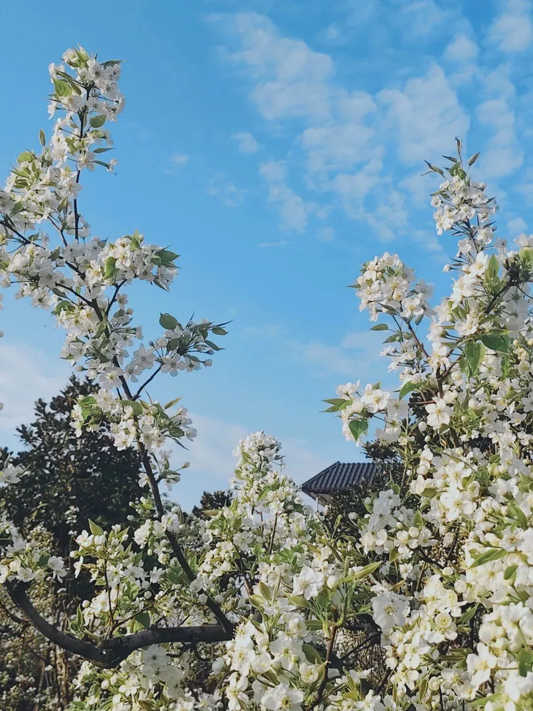 20分钟车程即可到达上庄乡马集镇,这里4000多亩梨花缀满枝头,洁白如雪,与村落相映成趣,水墨田园韵味拉满。