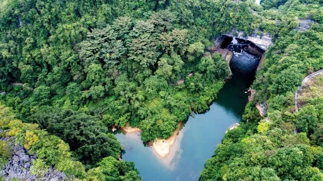 公园里的天生桥是核心景点,一座巨大的天然石桥横跨在峡谷之上,桥下是清澈的河水,周围是郁郁葱葱的树木,走在里面就像在天然氧吧里。还有地下河、溶洞等地质奇观,非常值得一看。