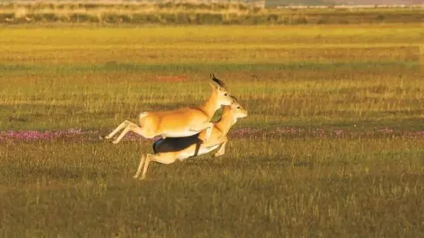 走出科普馆,就可以登高登上观景瞭望塔,借助望远镜近距离观察普氏原羚的鲜活姿态。亲眼见证精灵们奔跃在草原上的身影,敬畏自然、守护生态的理念绝对会油然而生,自此深深扎根于心间。