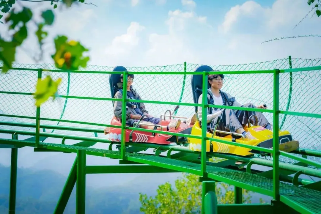 如果你想带娃锻炼身体,那九凤谷简直是为你量身定制的!这里爬山可以很“躺平”——坐上飞天魔毯,大人小孩都能悠然上山~