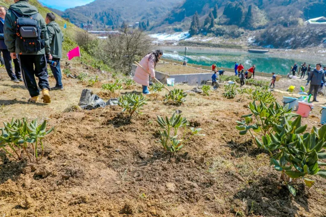 景区免费提供种植工具、营养土和浇水设备,工作人员现场讲解阔柄杜鹃的价值和种植技巧,专业人员巡回指导。