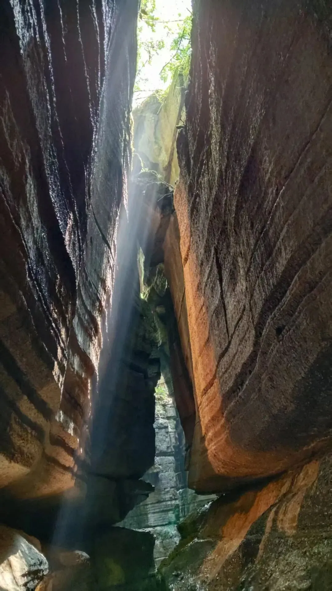 碧潭幽谷入口→幻石阵→霜叶桥→空门(大裂缝)→祛尘亭→悟道亭→金龟朝阳,共7个打卡点,累计约8公里。