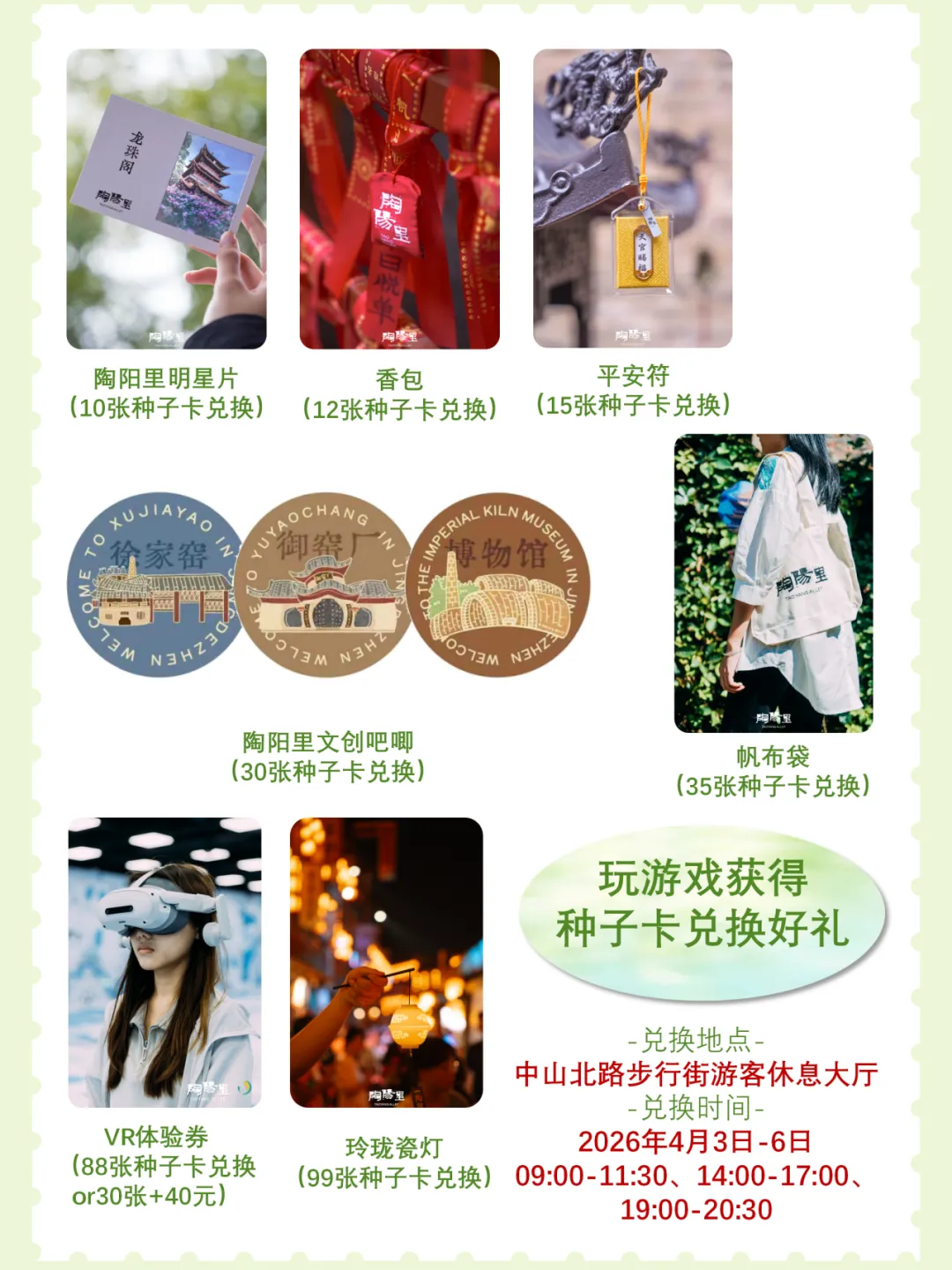 和散落在陶阳里各处的NPC一起玩春日小游戏,就有机会收集陶阳里春日种子卡,收集相应数量的种子卡可以兑换不同限定好礼~