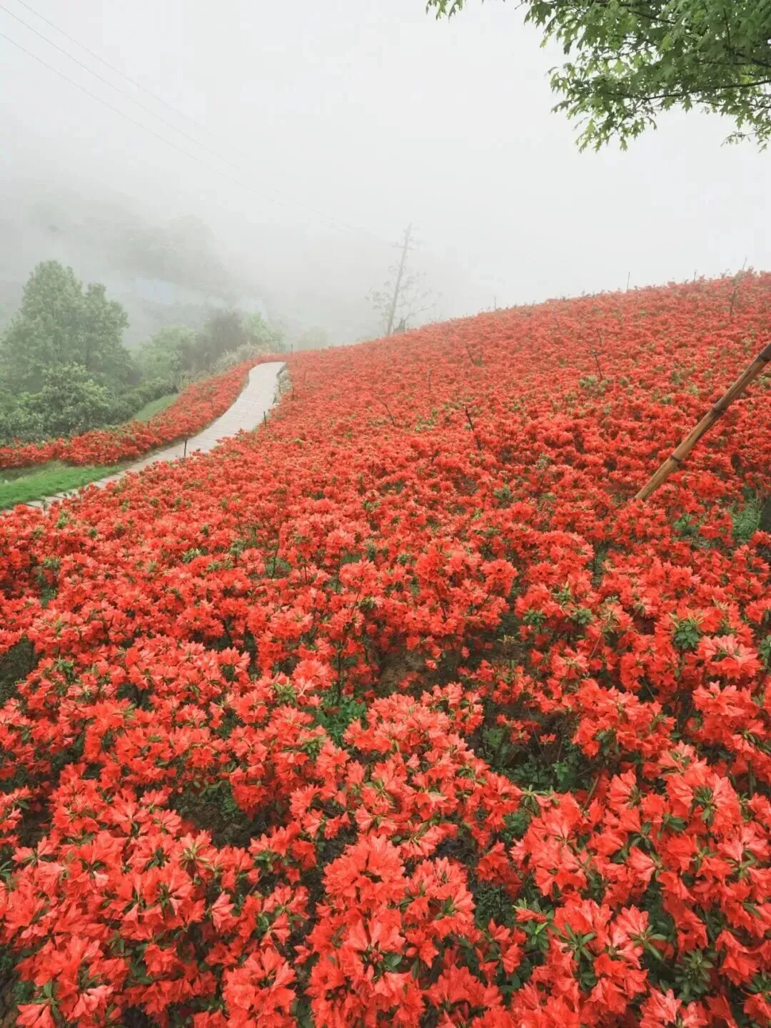 山坡上大片杜鹃竞相绽放,