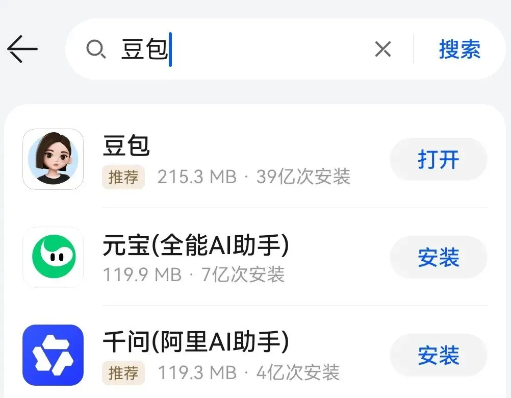 2.搜索框输入🔍:豆包/千问/元宝等