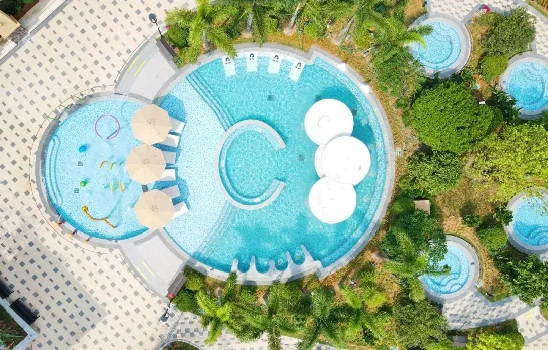 温泉区占地面积2.3万平方米,共有50多个泡池,分为南药温泉区、多巴胺温泉区、露营温泉区、亲子戏水乐园、莲花温泉池、溶洞瀑布池、冲浪池等。现打造的“一园多区”各有特色,丰富游客多种泡泉体验。