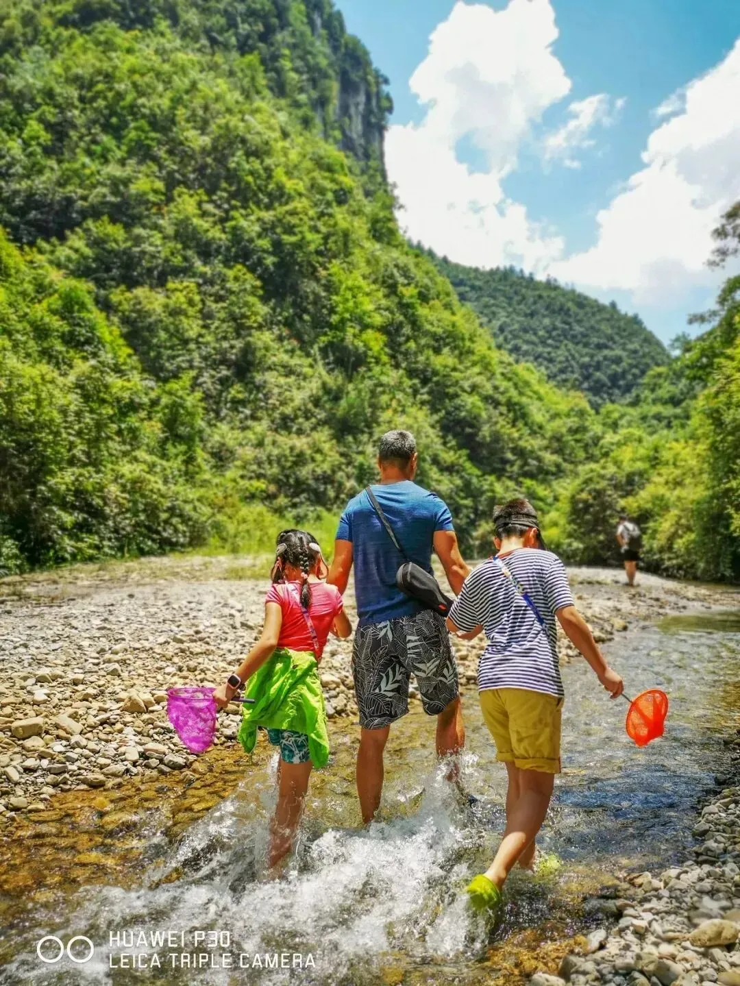 两岸风景独特,溪水清澈见底,水里随处可见小鱼小虾,孩子可以尽情地在水中玩耍嬉戏,捕鱼捉虾,大人们则可以感受远离都市的原生态自然风光,享受陪伴的乐趣。