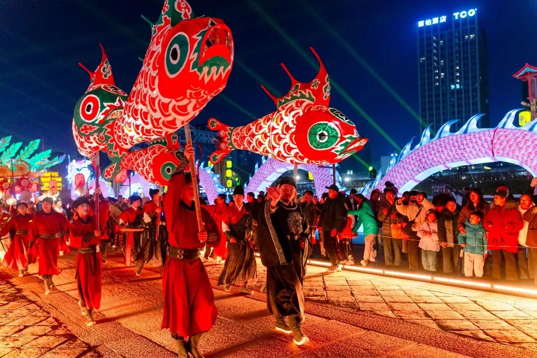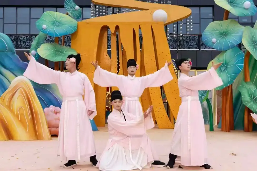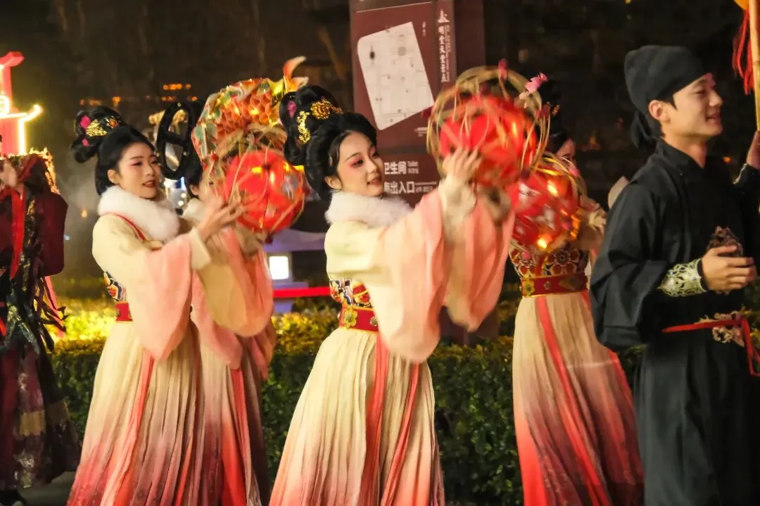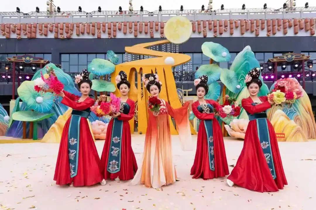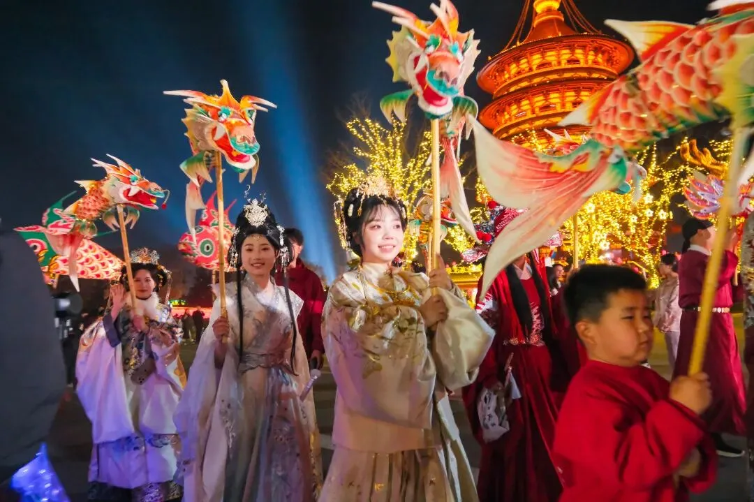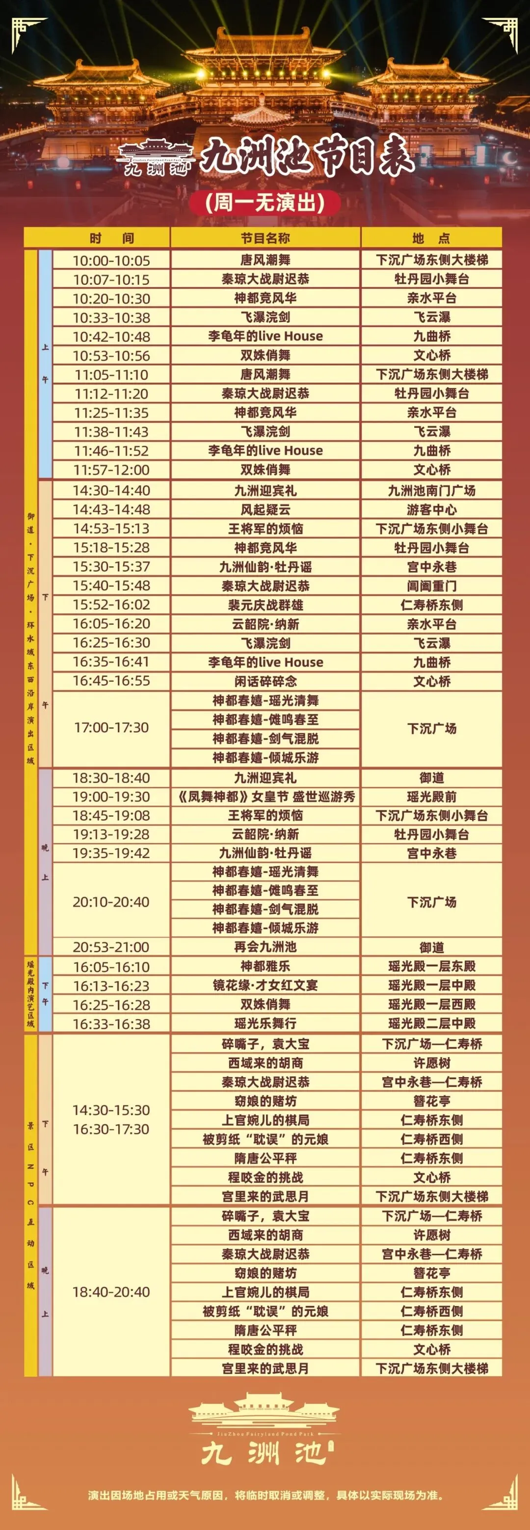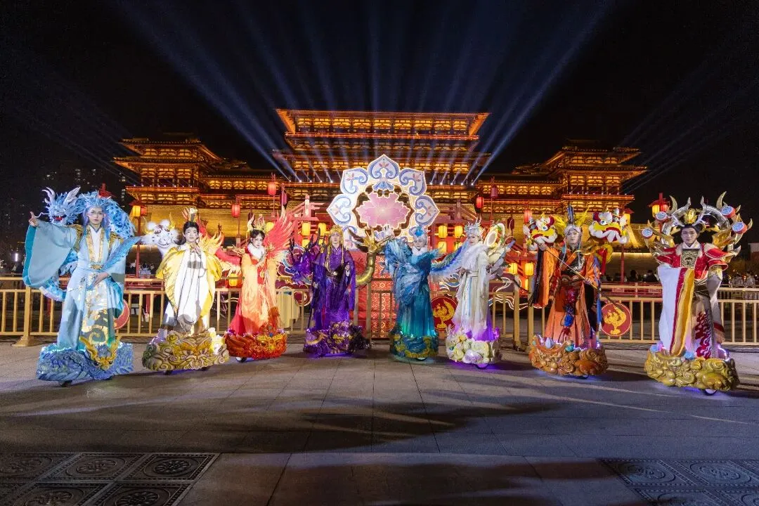 九洲池:隋唐英雄集结过招,八大瑞兽惊喜返场,更有神秘“池神”以脱口秀形式点评心愿,妙语连珠;《幻夜巡游·英雄护花》将盛唐繁华铺展成流动画卷。