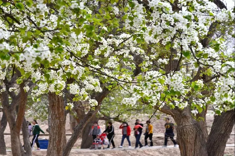 藏在黄河臂弯里的古村落,每到清明,百年梨树盛开,雪白的花瓣随风飘落,铺成一片浪漫花毯,宛如世外桃源。中卫市第二十届南北长滩黄河梨花季暨西北民歌(花儿)歌会的举办地,12项特色活动轮番上演,开幕式、花儿歌会、新国风戏法、“贺花神”主题巡游、文创展销等,让你在赏花的同时,沉浸式感受传统文化的魅力,带娃参与其中,既能赏美景,又能涨知识~
