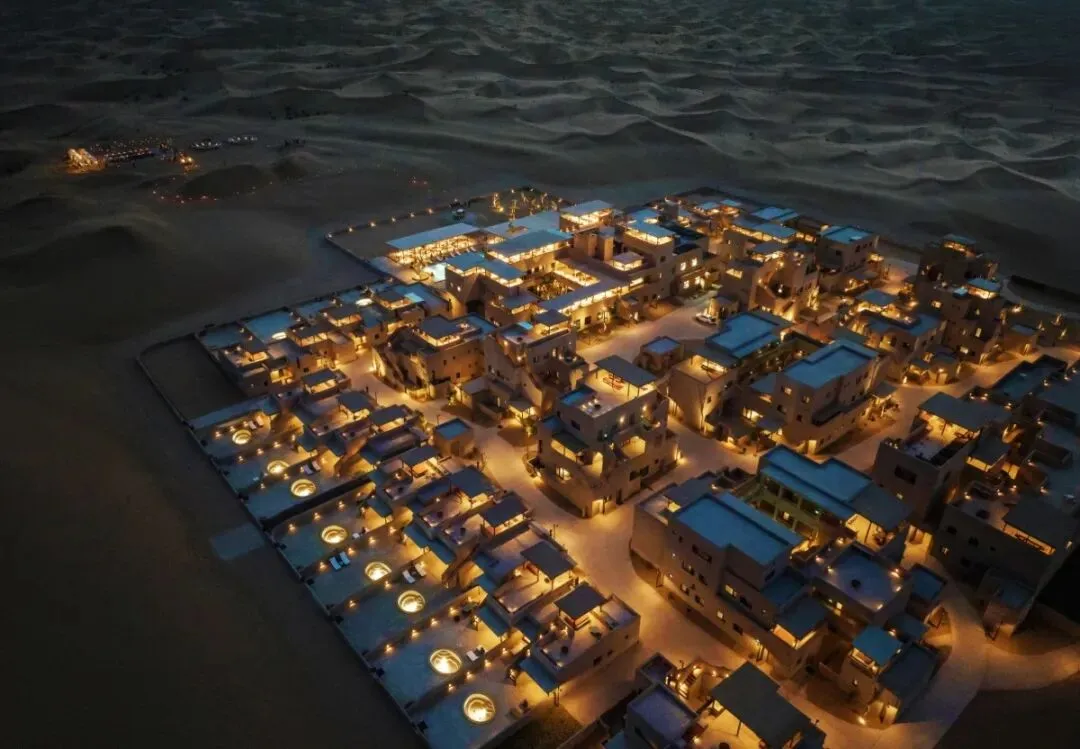 与星星酒店毗邻,同样坐落在沙漠腹地,整体设计简约大气,主打“高端舒适+沙漠景观”,推开房门就能看到连绵的沙丘,视野绝佳,适合追求舒适住宿体验的家庭。