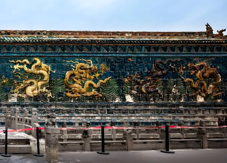 第八站:九龙壁就在古城里,明代的琉璃照壁,比北京故宫的还大还早。九条蟠龙用孔雀蓝、紫绿等24种釉料烧制,如果在雨天去,还能看到彩虹折射奇观。站在中间那条龙正对面拍照,气场全开。10元的门票,看一眼明代琉璃艺术的巅峰,绝对不亏。