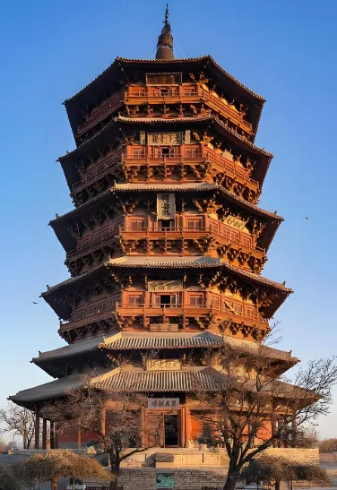 第九站:应县木塔虽然不在市区,但如果您对古建痴迷,一定要去。这是世界上现存最高最古老的纯木结构楼阁式建筑,与意大利比萨斜塔、巴黎埃菲尔铁塔并称世界三大奇塔。历经千年地震战火不倒,斗拱结构精密得让人惊叹。绕塔观赏,那种倾斜的美感和历史的厚重感,会让您对古代工匠肃然起敬。