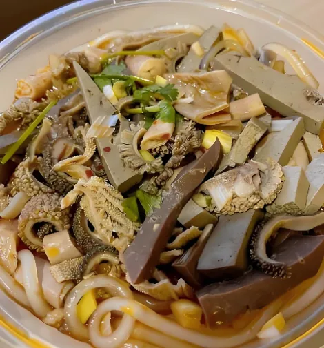 第五美食:大同羊杂这是大同人的早餐灵魂。羊心、羊肝、羊肺、羊肚切得干干净净,加大红袍花椒、葱姜、辣椒粉炒香,倒入高汤煮烂,再下粉条。汤底红润,羊杂鲜而不膻,香辣过瘾。早上来一碗“郑师傅羊杂”或者“凯鸽酒楼”的羊杂,配上油饼,20元开启元气满满的一天。
