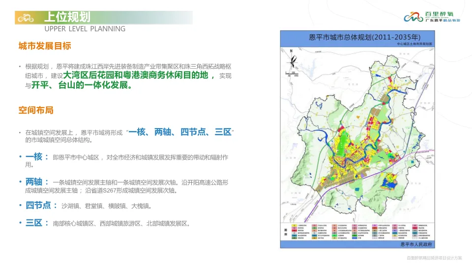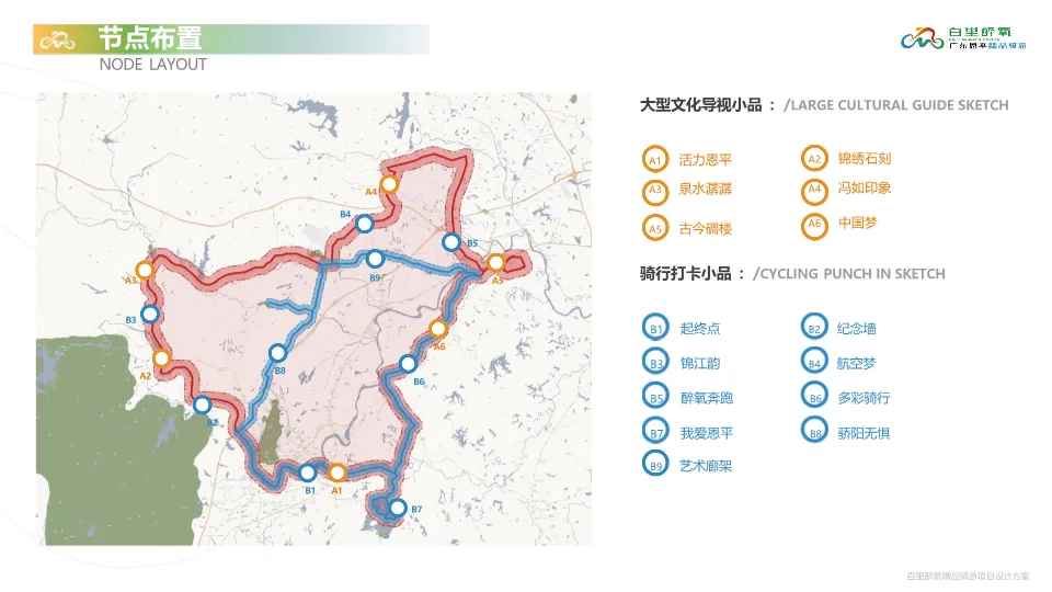 本方案为广东恩平市“百里醉氧精品骑游项目”的完整规划设计文本。项目旨在依托恩平“中国天然氧吧”的生态优势与侨乡文化底蕴,打造国家级体育模范县与粤港澳精品骑行目的地。规划设计了总长约170公里的内外双环骑行线路,串联冯如故居、温泉区、碉楼等核心景点。方案系统涵盖了项目定位、超级符号VI设计、沿线文化装置、驿站服务系统、标识导视及详细的建设库与时间计划表,是一份融合生态、文化、体育与品牌营销的综合性区域旅游开发策划范本。