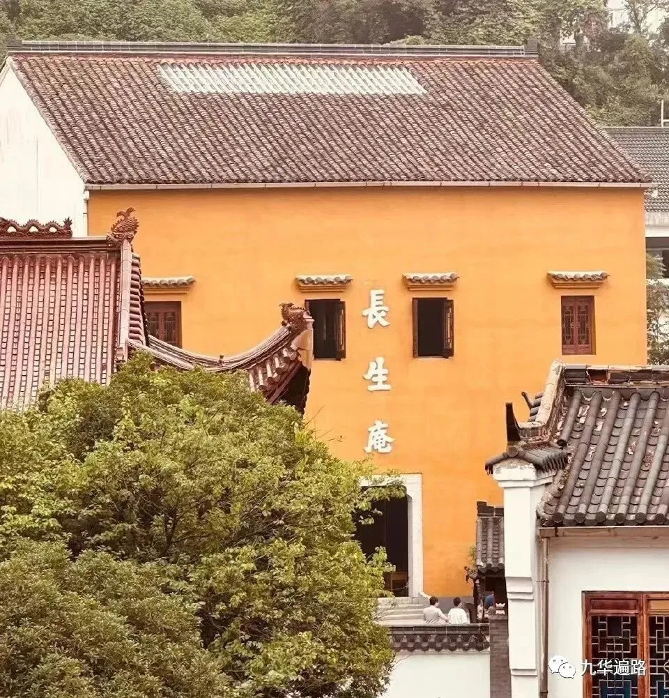 长生庵,位于旃檀林斜对面,从大厦庵出发约2分钟即到。长生庵,始建于明代,安徽省重点寺院。明弘治年间住持实庵,仪表堂堂,才华横溢,王阳明游山时,曾与之投缘交往并题诗相赠。一方院落挡住了市井喧嚣,留住了佛门清净,这里晨钟暮鼓,庄严肃穆,是九华山少有的清净道场。长生庵住持是比丘尼无垢法师,1988年至今任九华山佛教协会副会长。上禅堂,始建于清代,全国重点寺院。上禅堂的建筑富有特色,是九华山同期古建筑里保护的最有价值的,大殿的佛像同样采用传承千年的生漆夹纻工艺制作,属珍贵文物。九华山最有历史的滴水观音位于上禅堂,上禅堂也有“小普陀”之称,这里风景绝佳,还是86版《西游记》取景地。上禅堂住持果卓法师,安徽庐江人。1985年在九华山祇园寺礼慧开法师出家,1992年-2000年任九华山佛学院教务长、副院长。现任九华山佛教协会副会长。果卓法师为人谦和,多年来投身公益慈善,令人赞叹。