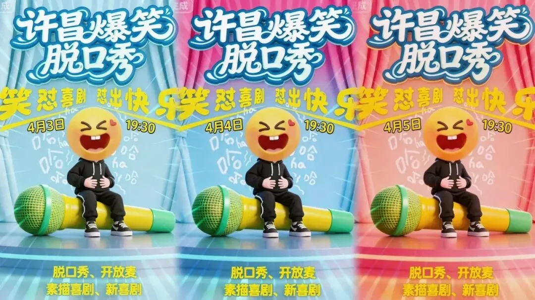 工作日积攒的疲惫,让脱口秀的爆笑来治愈!“笑怼喜剧硬核脱口秀+爆笑即兴表演”清明假期连演三晚!超有趣的段子,超欢乐的现场,让你在笑声中释放心情!
