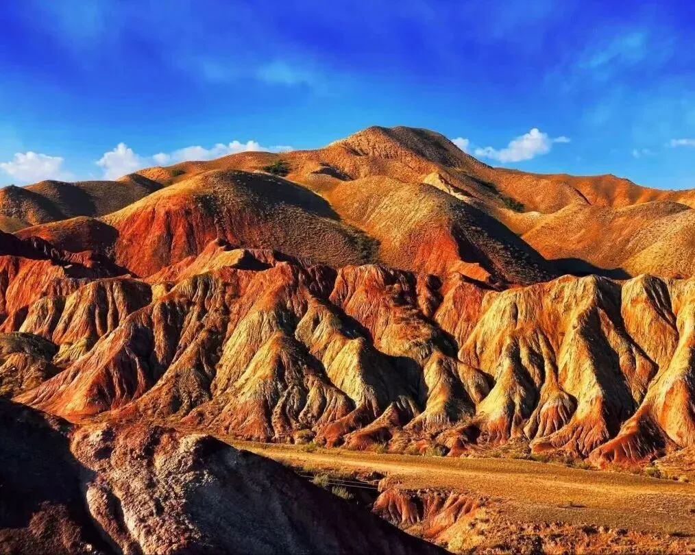 是S101国防公路沿线最具代表性的自然景观带。高温燃烧改变了岩石的化学成分,使原本灰暗的岩石呈现出红、黄、橙、绿等绚丽色彩,因祸得福造就了如今的“百里丹霞”。
