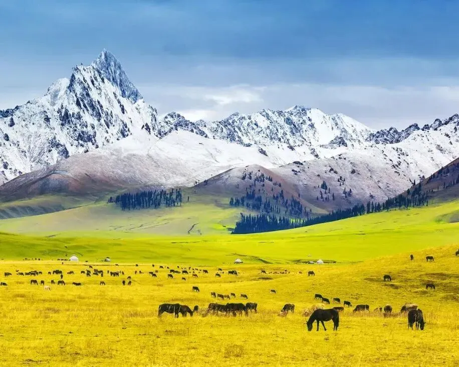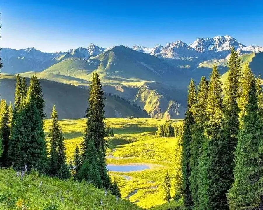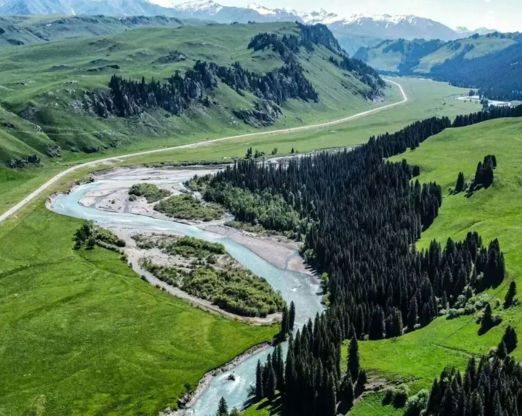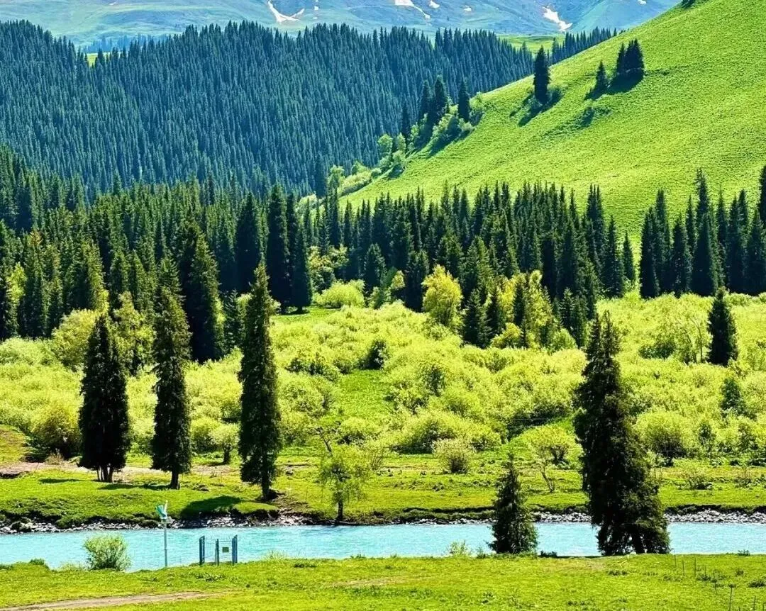 库尔德宁是天山山脉腹地的世界自然遗产地,以壮美的云杉林、草原、雪山和溪流景观闻名。