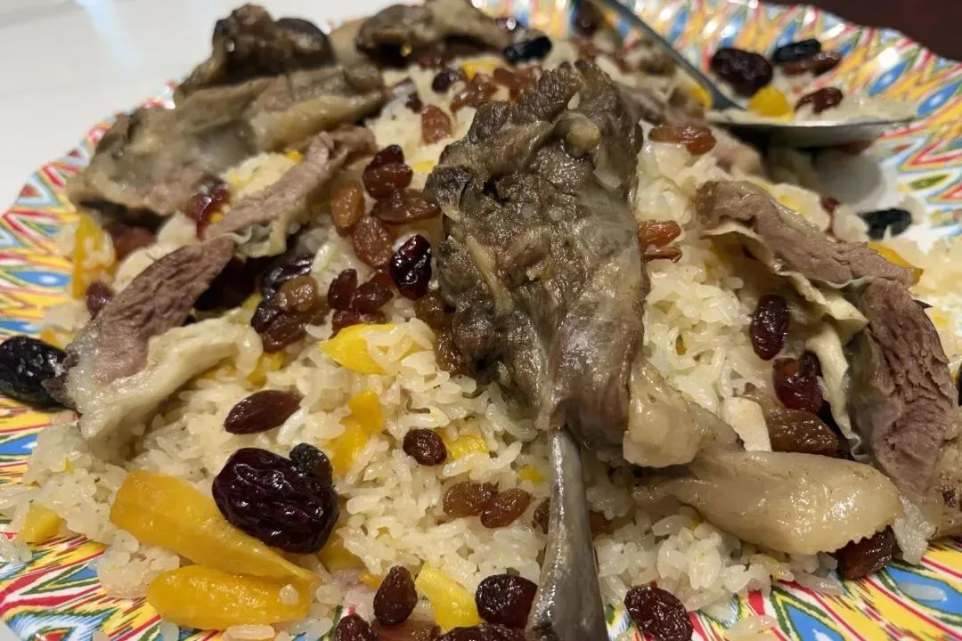 以阿勒泰大尾羊的风干肉为特色,羊油渗透米粒,搭配金黄胡萝卜、葡萄干,甜香与肉香交织,解腻的酸奶凉糕是绝配。