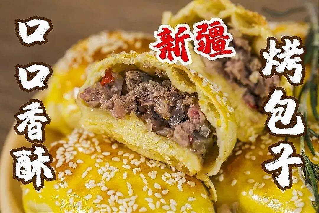 薄面皮裹羊肉丁、洋葱、孜然,馕坑烤制,外皮金黄酥脆,内馅滚烫多汁,是新疆人气早餐。