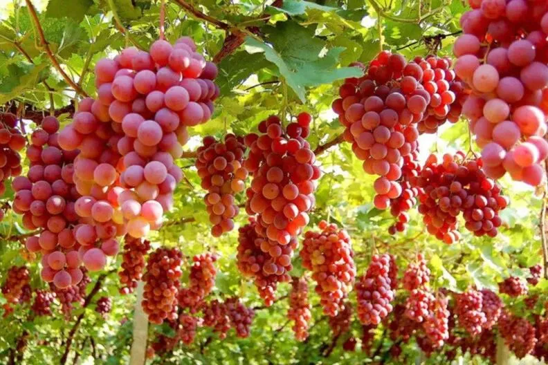 吐鲁番的葡萄品种繁多,现有无核白、红葡萄、黑葡萄、玫瑰香、白布瑞克等500多个,品质上乘的有无核白葡萄、马奶子、红葡萄、喀什哈尔、梭梭葡萄等18个品种,而无核白葡萄的含糖量可高达22%-24%,堪称“世界葡萄植物园”。