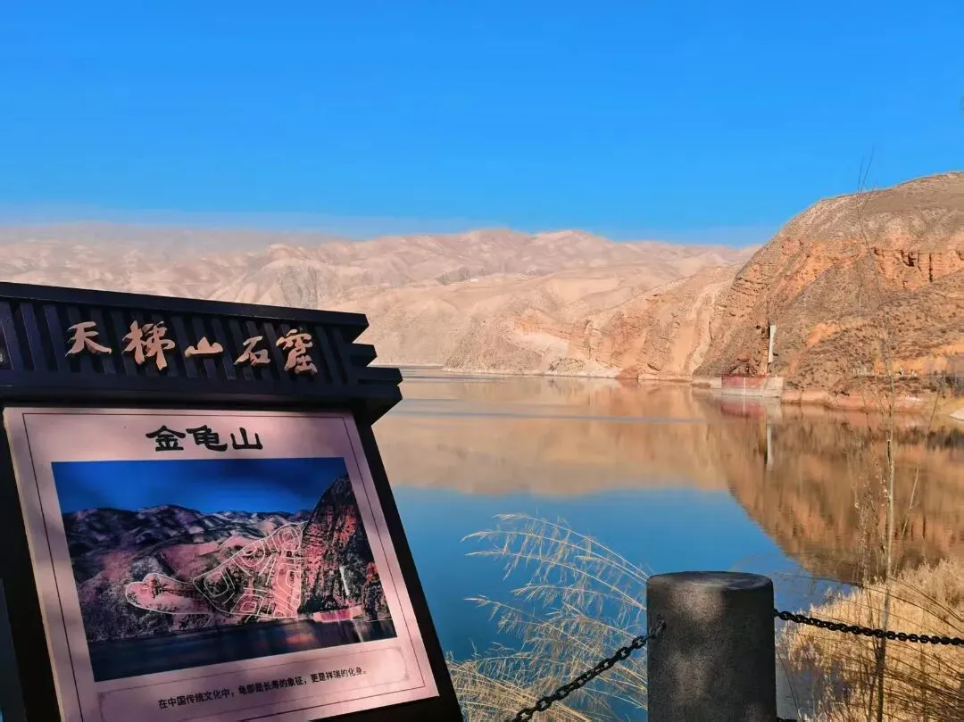 远眺祁连山脉层峦叠嶂,山顶积雪终年不化,即为凉州城外八景之一“天梯古雪”;近观黄羊河水库,碧波倒映丹崖赤壁,金龟山形如灵龟伏卧,祥瑞自生。