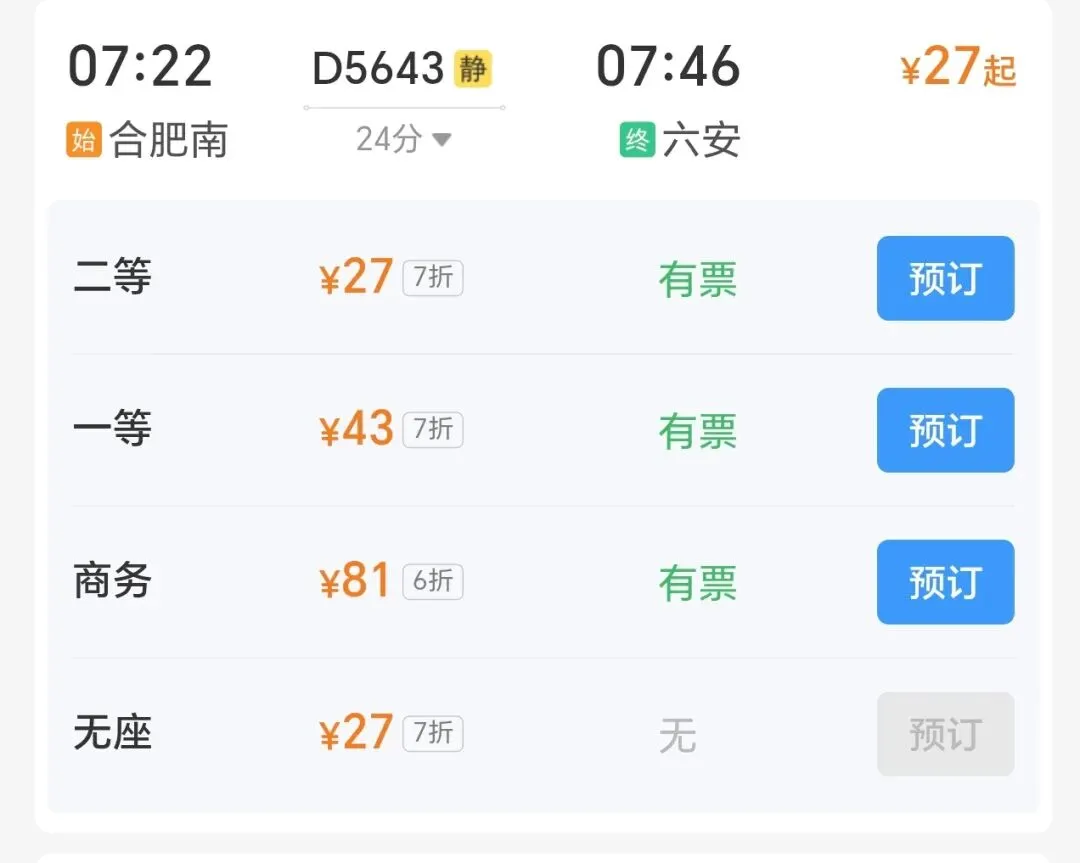 ✅车次票价参考: