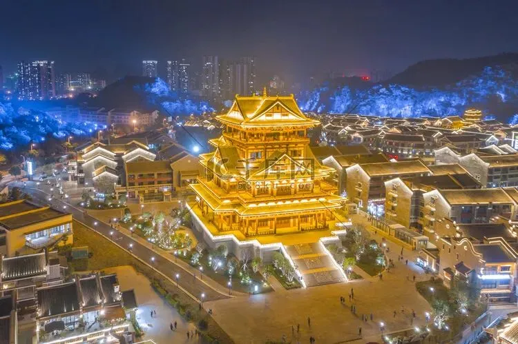 19:00灯光亮起,古色古香的建筑搭配璀璨灯火,氛围感直接拉满,秒出民族风大片。