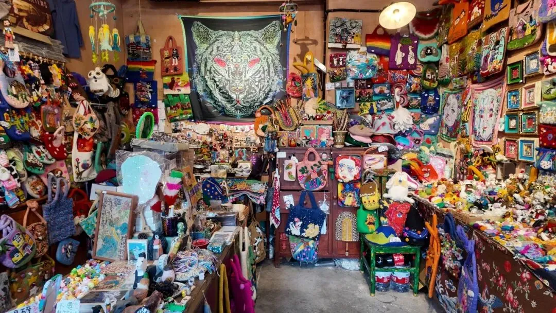 这是一家卖故事杂货店。里面放满了店主精心挑选的各种好玩的手工艺品、小玩具、文创等等。