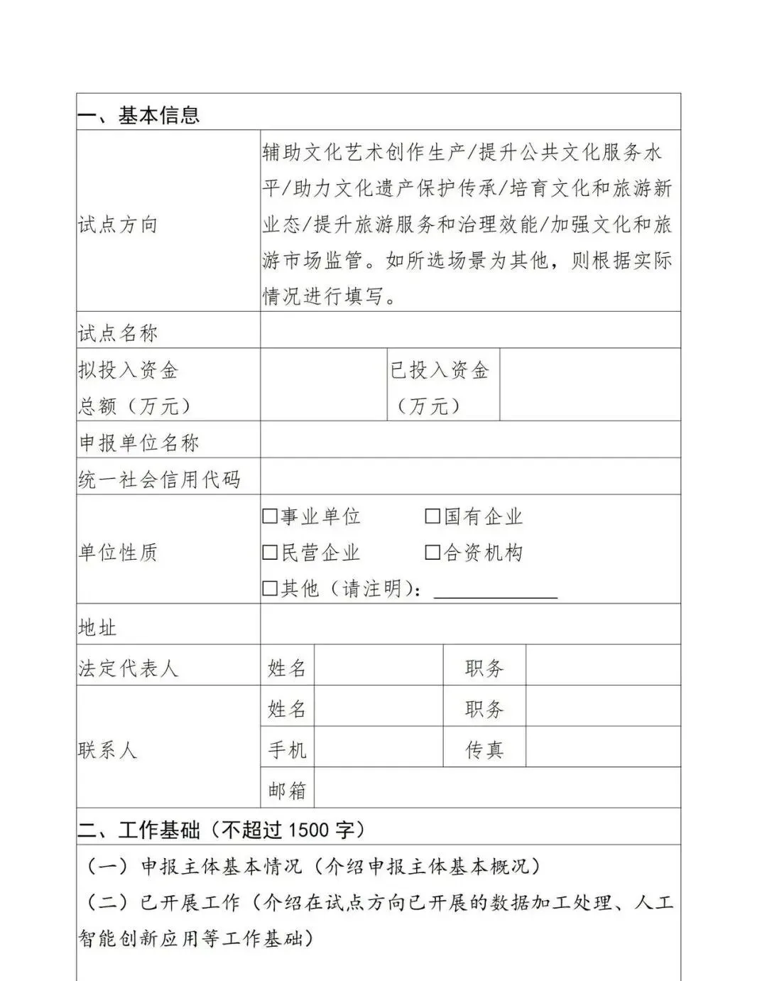 为贯彻党中央、国务院决策部署,落实《关于深入实施“人工智能+”行动的意见》要求,加快推进人工智能技术在文化和旅游领域深化应用,拟部署一批“人工智能+文化和旅游”应用试点。现将有关事项通知如下: