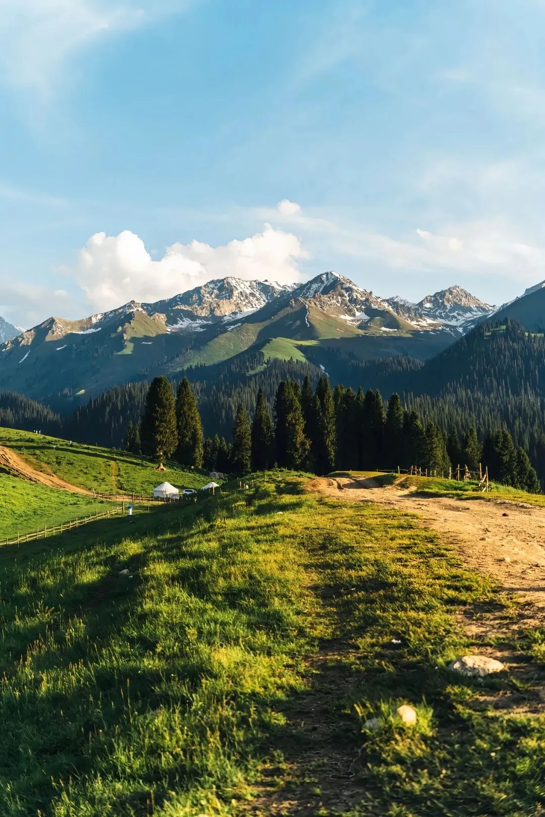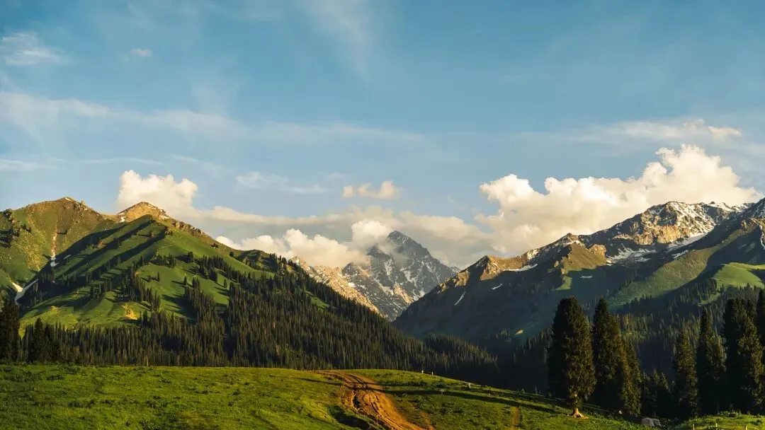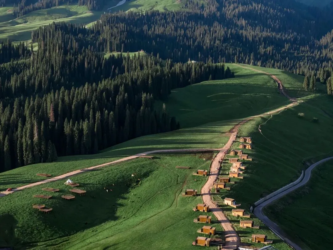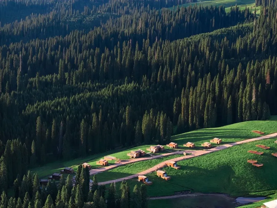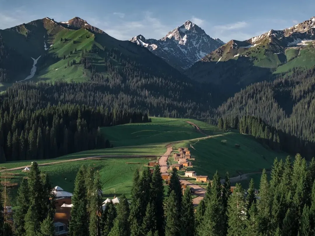 库尔德宁,哈萨克语意为“横沟”,位于新疆伊犁哈萨克自治州巩留县东部山区,距县城88公里。它是一条南北走向的山间阔谷,长约14公里,最宽处1公里,谷底平均海拔1500米——这种与雪山平行的独特走向,在伊犁河谷中绝无仅有库尔德宁,是一片被天山护佑、被云杉守望的净土。它不如那拉提名声在外,却以世界级的原始森林、终年不化的雪峰和“横沟”的独特姿态,静静等待每一位到访者