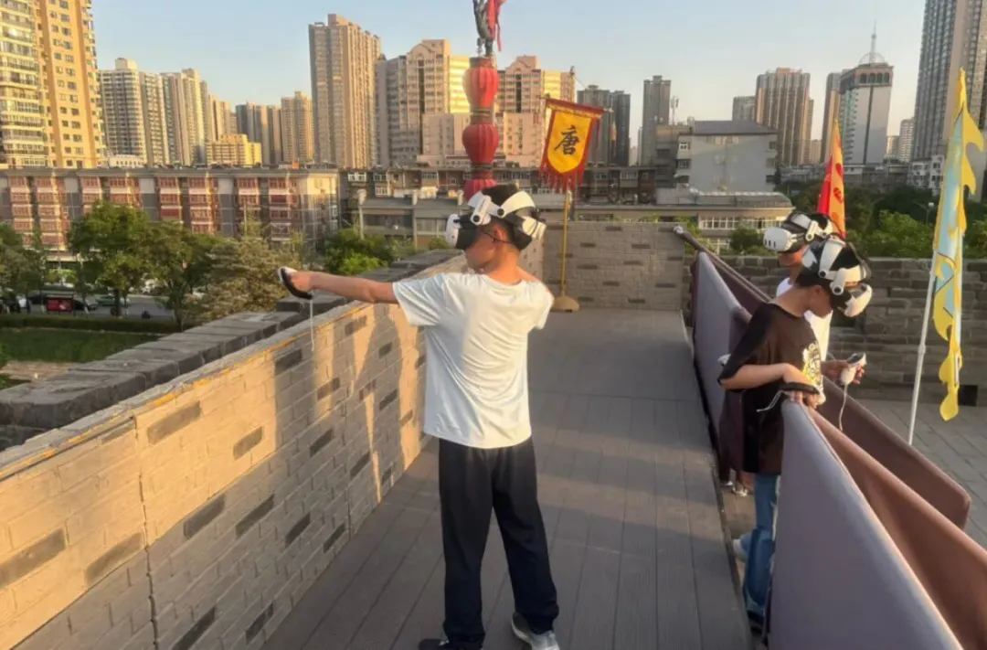 想玩出新鲜感?不妨试试城墙MR黑科技-《从军行》之金甲卫城,当您戴上MR设备,瞬间化身一位金甲武士,开启身临其境的历史穿越之旅,保卫长安城的和平!