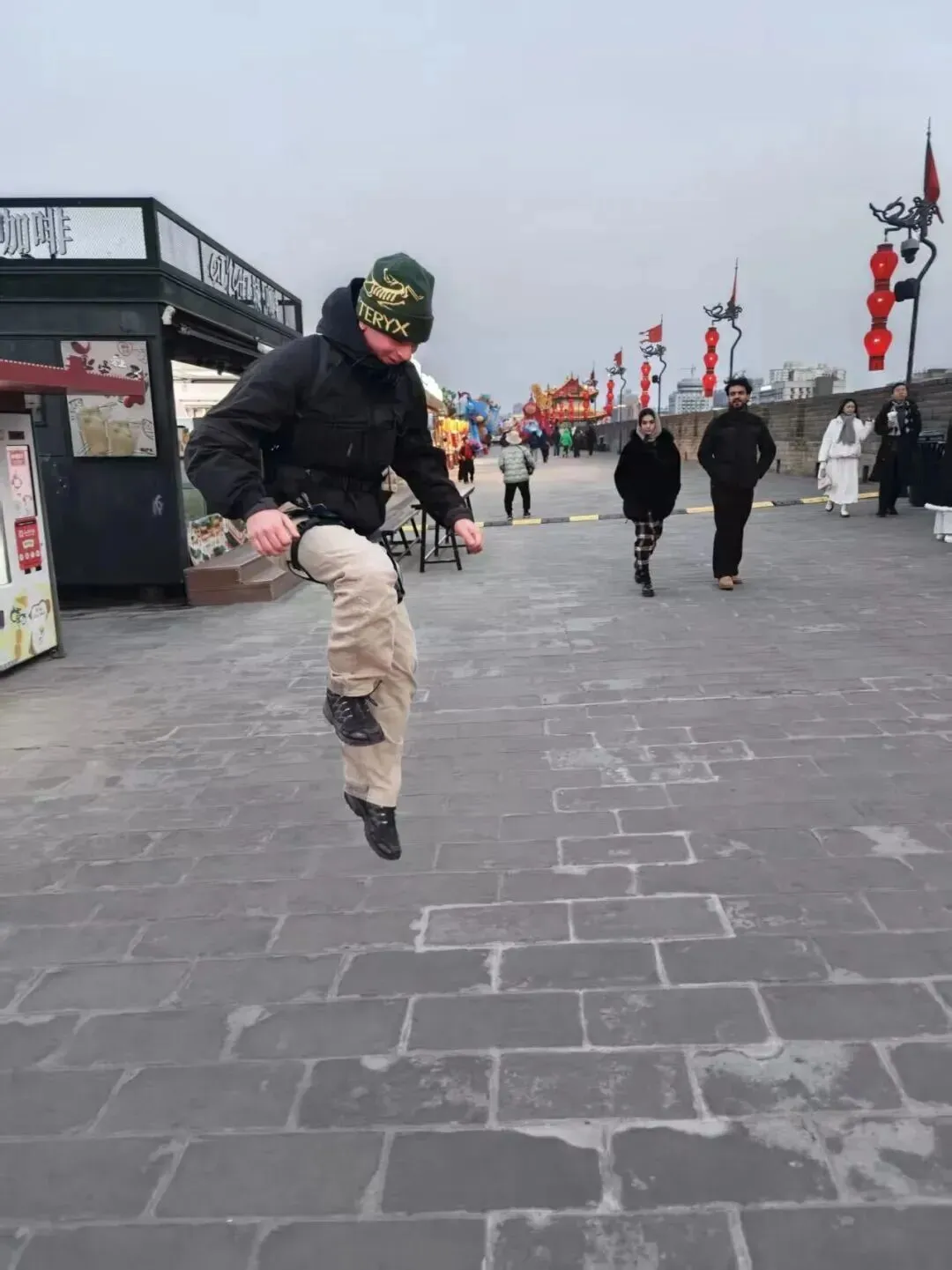 担心徒步赏灯累脚?别慌,城墙的暖心黑科技早已就位——AI外骨骼机器人,简约利落的设备贴合身形,上坡时精准助力,让您不用费力攀爬。更有假期特惠29.9元/1小时,快前往永宁门城上东侧20号马面、西侧23号马面体验吧。