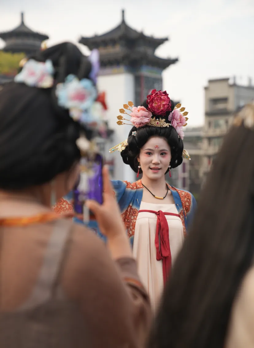 赏完盛唐大戏,怎能不换一身华服,定格这份古韵与春光?行走在青砖上,衣袂随风轻扬,每一步都像是从盛唐画卷中走出。这里为您奉上经典机位打卡,拍出朋友圈点赞爆棚的国风大片吧