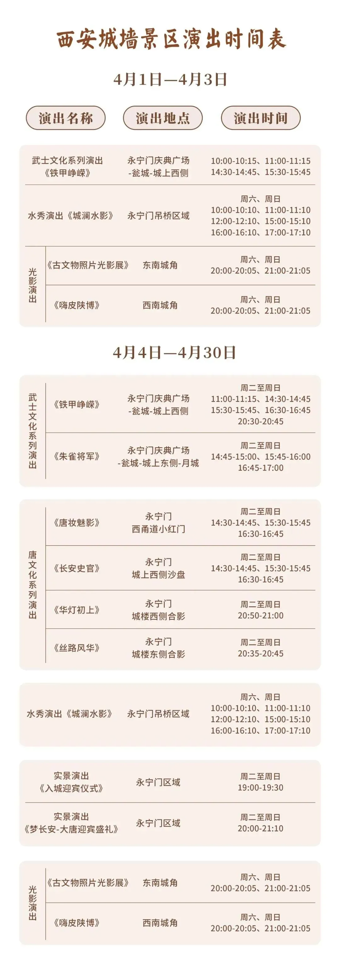 登千年城墙,赴盛唐之约,4月4日,《梦长安—大唐迎宾盛礼》将在永宁门礼仪广场再次回归,作为国宾级实景演出,它以盛唐礼制为根基,还原“落吊桥、开城门、迎贵宾”盛景,将万国来朝的壮阔、唐诗的悠远、丝路的交融徐徐铺展。