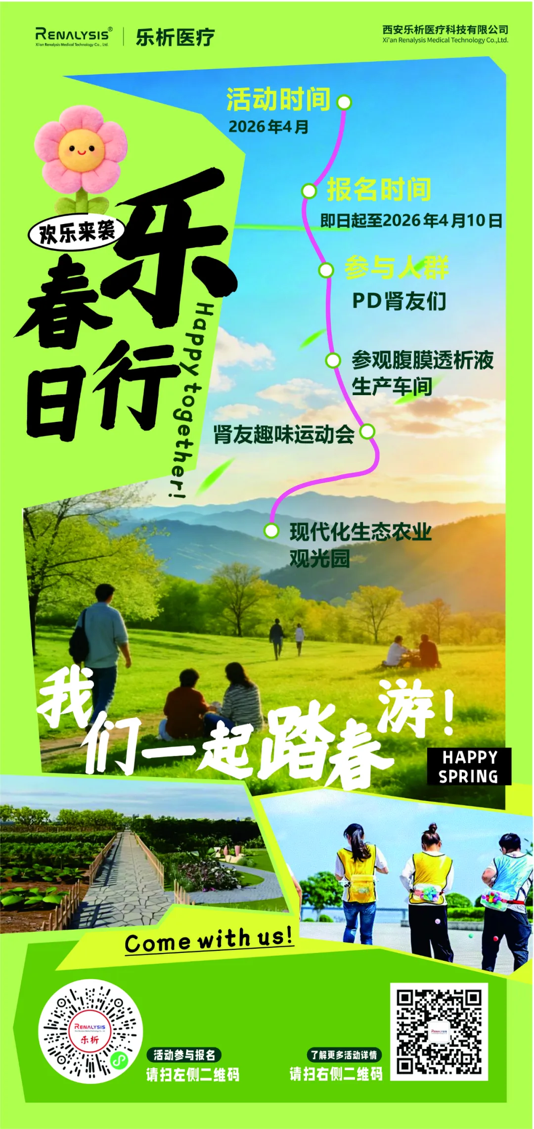 春日美好,不该被疾病阻挡;生活的精彩,不该因透析止步。乐析医疗始终以技术为支撑、以服务为核心,守护每一位腹透肾友的健康,让你既能安心接受透析治疗,也能自由奔赴春日之约,去看花开、听风吟,在春光里感受生活的美好。