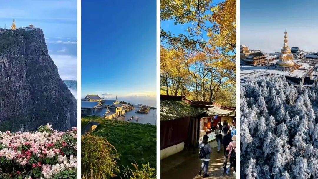 中国四大佛教名山之一,普贤菩萨的道场,世界文化与自然双遗产。山上有古刹30余座,每一座都藏着几百上千年的故事。金顶的十方普贤像48米高,远远就能望见;山里的猴子比游客还凶,塑料袋是它们的“集结号”;春天的杜鹃从山脚开到山顶,一开就是两个月。