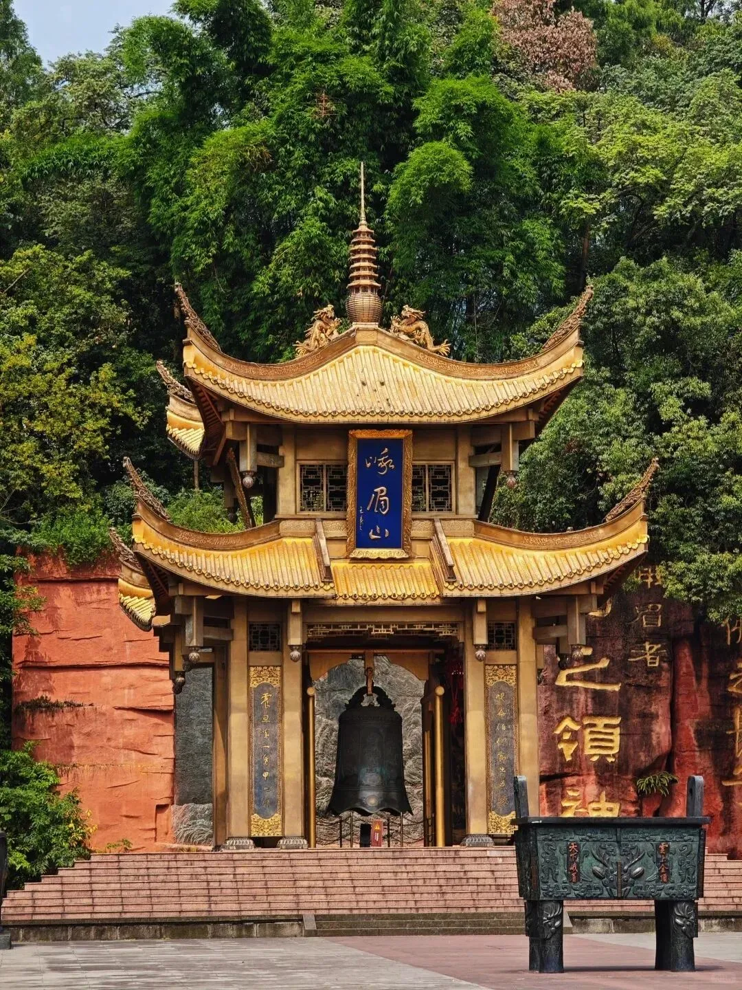 📍报国寺:峨眉山入口第一寺,香火旺盛,建筑宏伟。