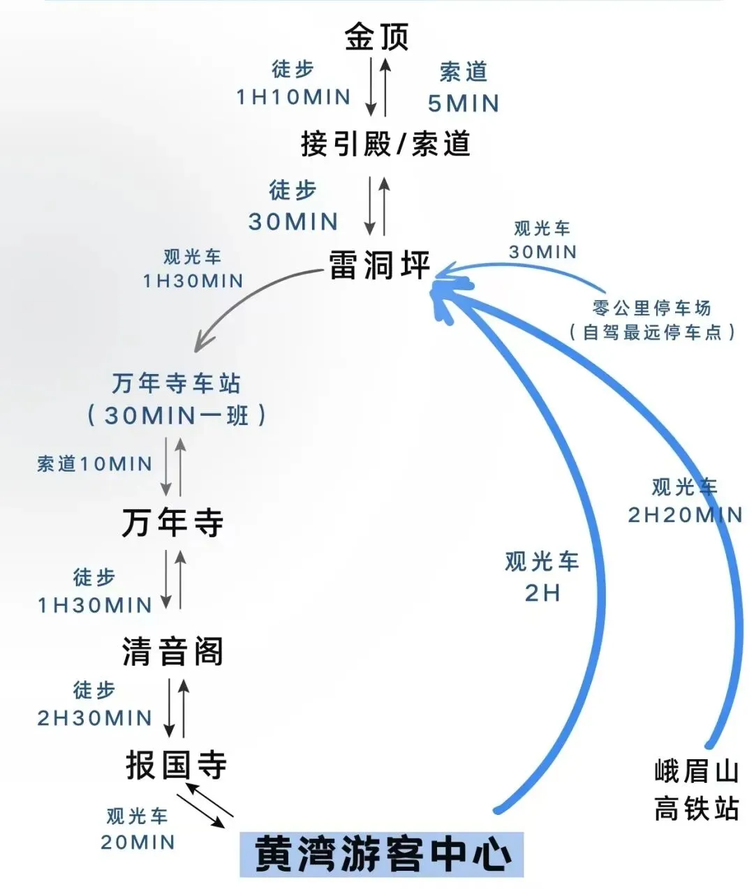 ⚠️自驾车在最远可以开到零公里停车场,再换乘景区观光大巴车到雷洞坪(离金顶最近的车站)