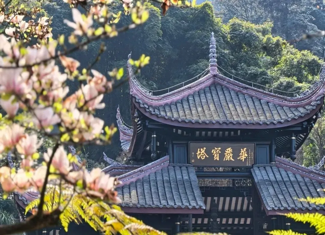 万年寺→息心所→华严顶→洗象池(古寺红墙映着漫山繁花,氛围感拉满)