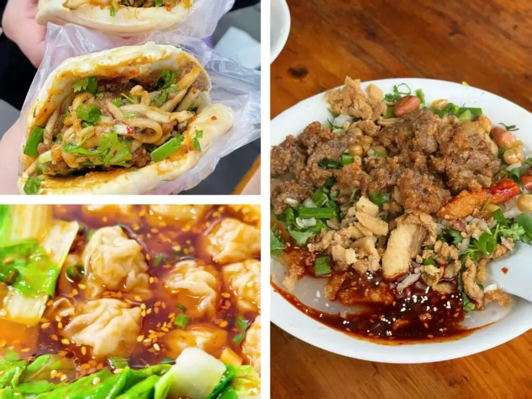 ✔咔饼:古记咔饼的味道令人难忘,蒸热的白饼夹上爽脆萝卜丝和粉蒸牛肉或肥肠,口感扎实。