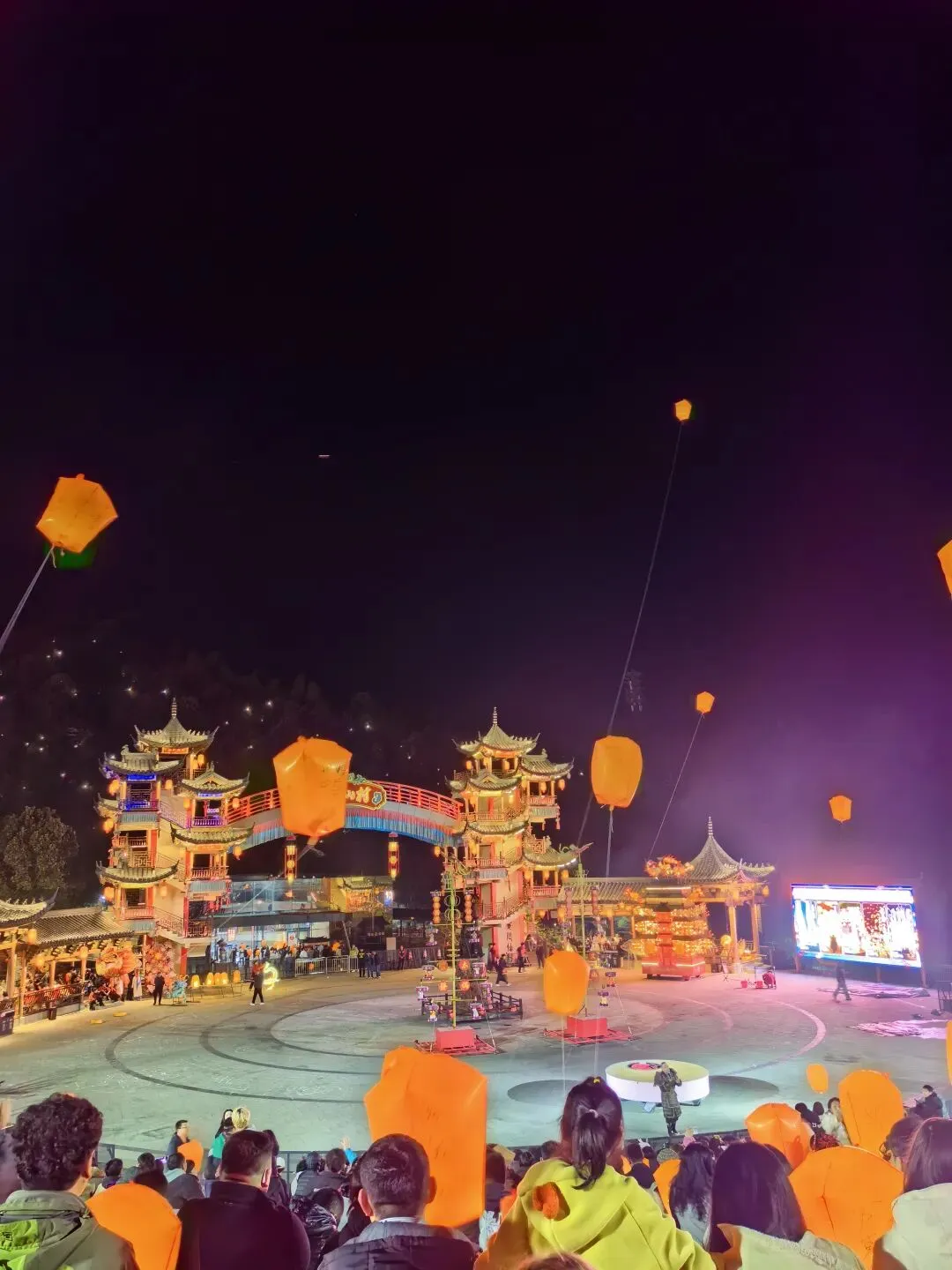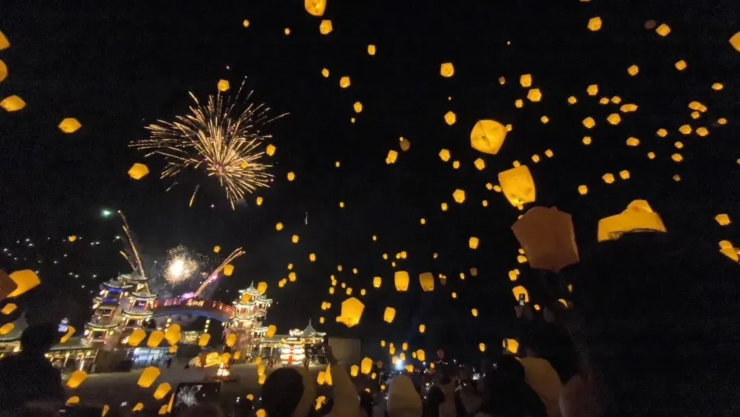 (放河灯→7点火壶表演[穹灵之焰]→20:20[千灯巡游]重磅→20:50烟花表演+孔明灯)