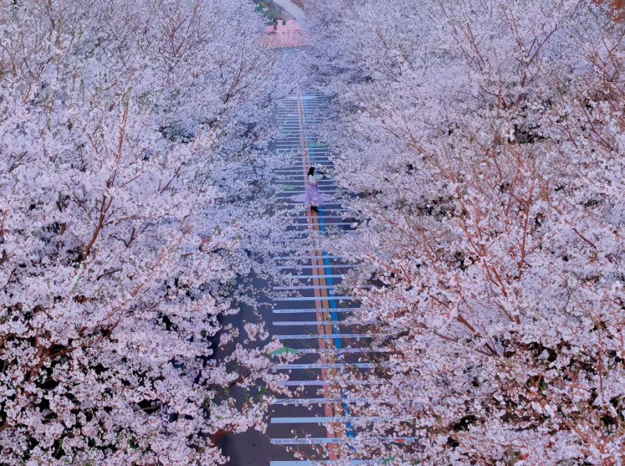 活动以“国色芳华大巡游、游园寻芳戏花神、春日焰火耀花朝、春歌缭绕醉春风、千机绘梦舞星河、汉服美拍映花颜、非遗演艺传古韵、千灯齐放祈春愿”为核心脉络,在园区打造八大主题体验内容,樱花、桃花等花海景观与铜官窑古建相映成趣,勾勒出独具韵味的春日画卷。