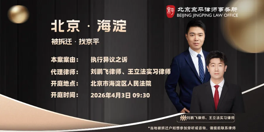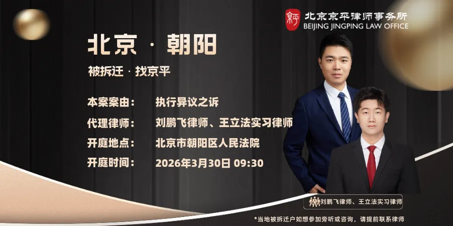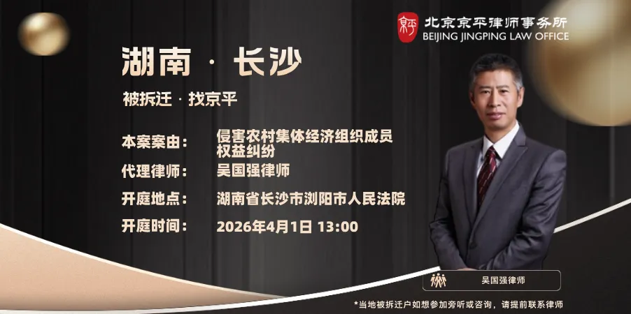 2026年3月30日至2026年4月2日,北京京平律师事务所专业拆迁维权团队的律师们将前往以下城市开庭: