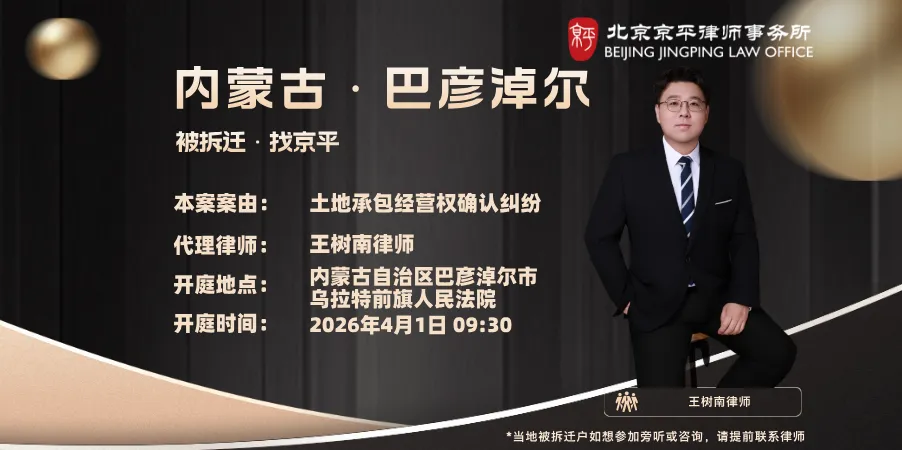 4月1日 本案案由:土地承包经营权确认纠纷 代理律师:王树南律师(18811319190) 开庭地点:内蒙古自治区巴彦淖尔市乌拉特前旗人民法院 开庭时间:2026年4月1日09:30