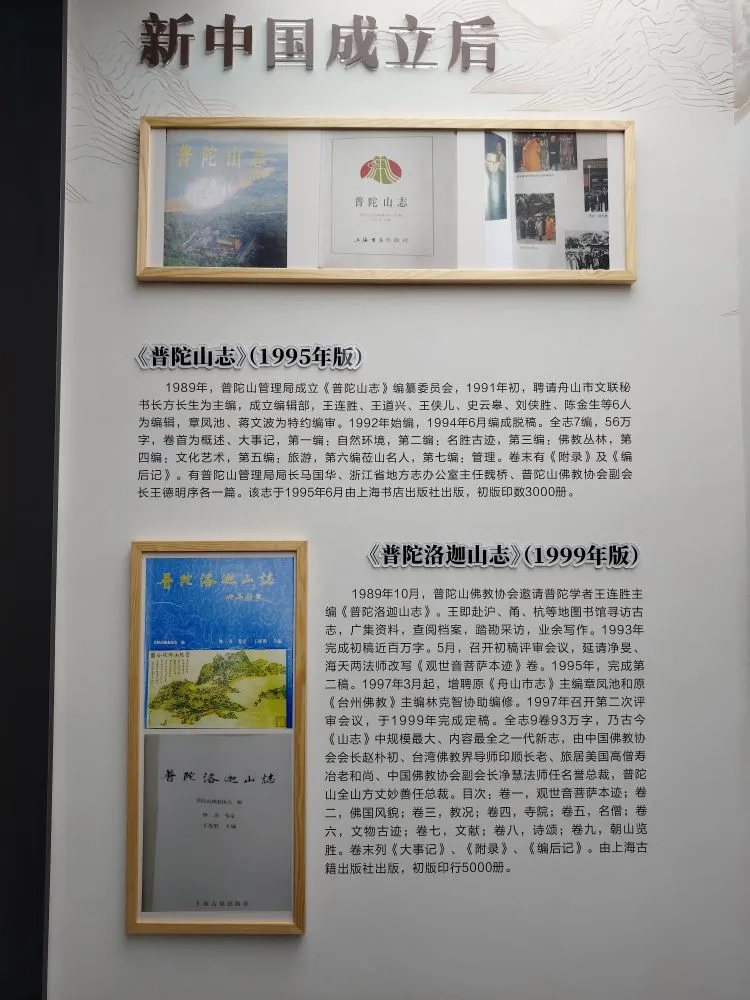 △普陀山方志馆位于中山社区六峤区域,馆内系统梳理了普陀山自秦汉至今的悠久历史与人文脉络,展陈“海国长城”碑、《勒建南海普陀山境全图》、元代至今的13部《普陀山志》等历史文物,是展示观音道场兴衰演变、海岛社会变迁的重要文化空间。