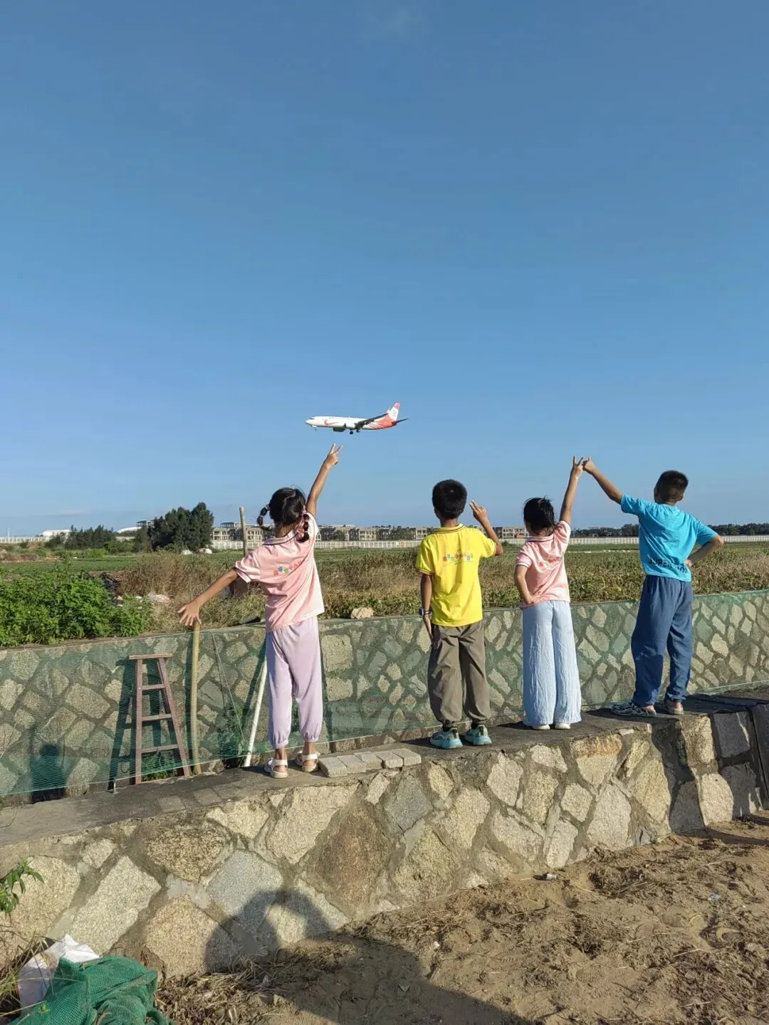 飞机起飞的时候,我们能感受到空气和地的震撼,而降落的时候,孩子们与飞机一起摆拍。如此近距离的观察飞机的起落,很多人都是第一次。